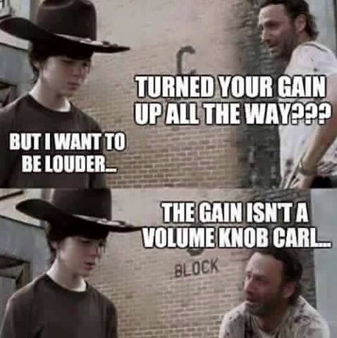 We get so used to the idea that turning up the gain introduces more clipping, that we expect our sound to get bigger and more aggressive the more we turn it up. Doing so turns up your compression which actually contributes to a quieter sound. Aint that a kick in the pants?